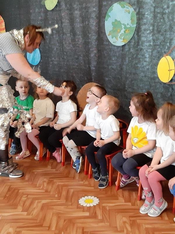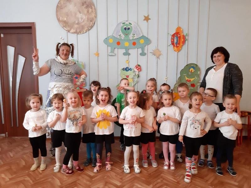 12 апреля 1961 года навсегда останется в памяти человечества. 55 лет назад Юрий Алексеевич Гагарин совершил первый в истории полёт человека в космическое пространство – облетел земной шар за 108 минут и благополучно вернулся на землю. Теперь полёты в космос стали привычными. Человечество превратило мечту в реальность. В группе «Горница» прошла декада, посвящённая космосу и космонавтике, в завершении которой было организованно тематическое развлечение. Задачами развлечения были: познакомить детей с космосом, дать понятие кто такой «космонавт», расширить кругозор детей. К ребятам на праздник прилетала Инопланетянка, которой детки рассказывали стихи, вместе с ней играли и танцевали и конечно в завершении развлечения получили космические сюрпризы от своего гостя.