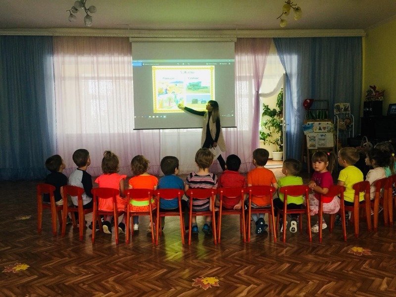 Воспитатели рассказали воспитанникам, откуда берется хлеб; сколько работы нужно проделать, чтобы получить маленькую булочку хлеба. Во время беседы дети узнали о значении хлеба в жизни человека, познакомились с процессом выращивания хлеба, с тем, как хлеб приходит к нам на стол, какие сельскохозяйственные машины помогают людям выращивать хлеб.