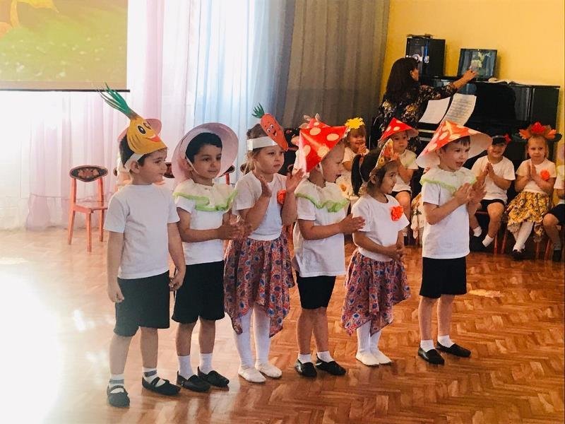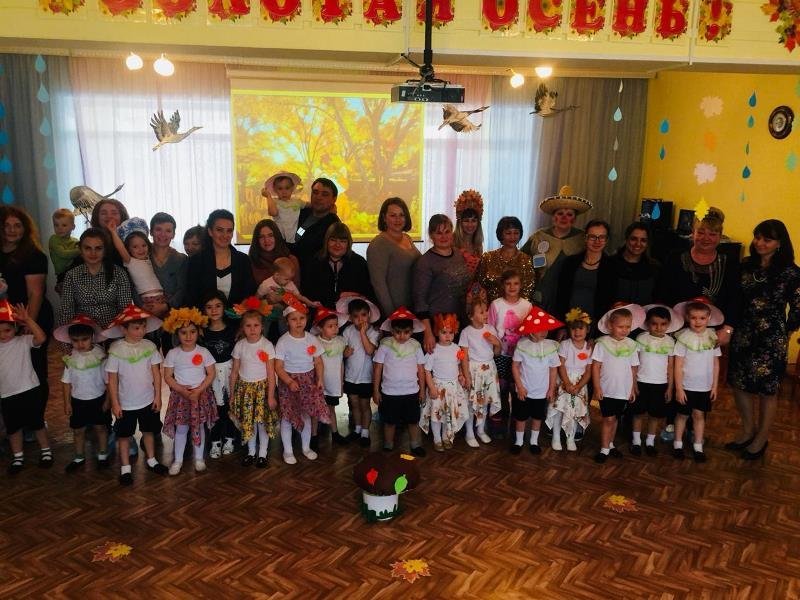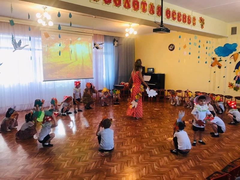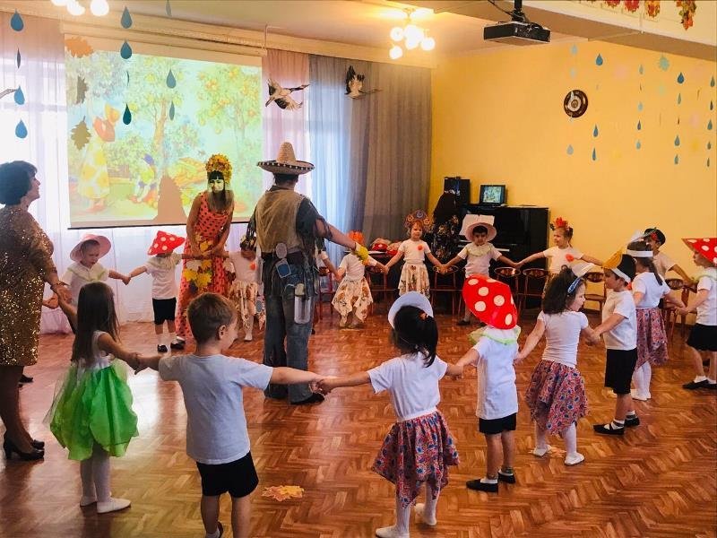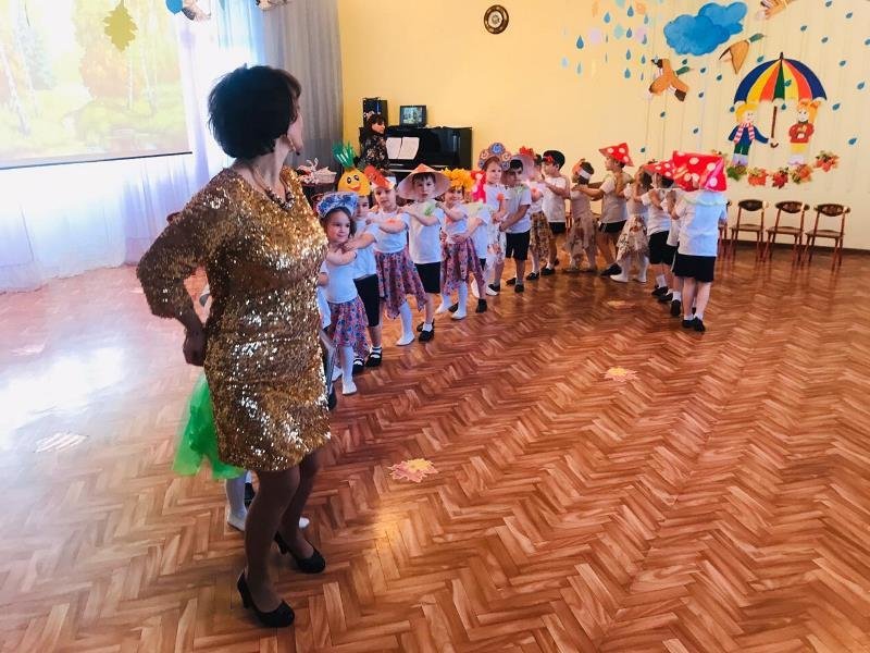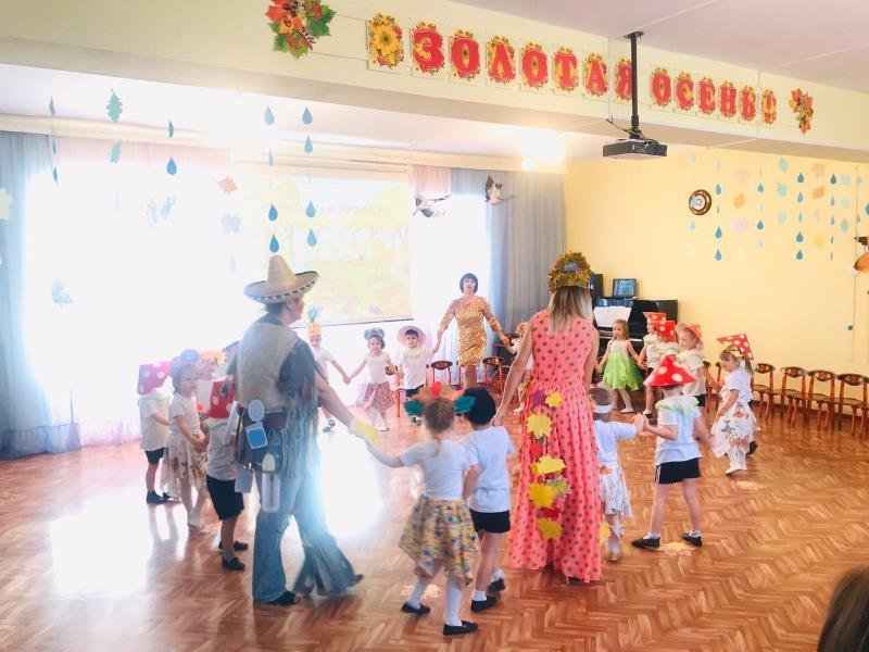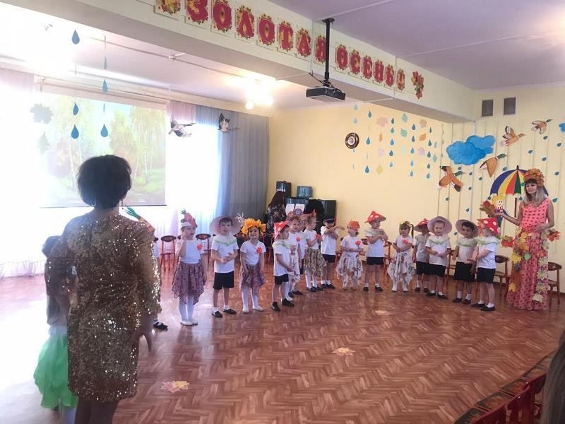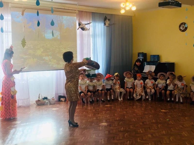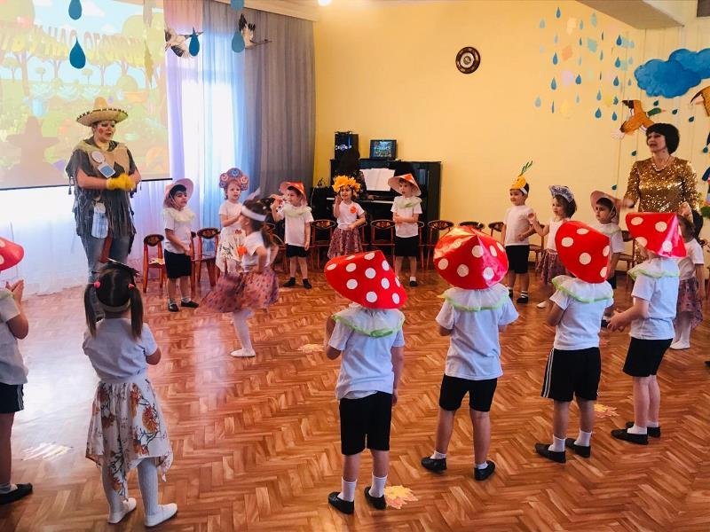 Мальчики исполнили для Осени озорной и задорный танец грибочков, а девочки весело танцевали с листочками.