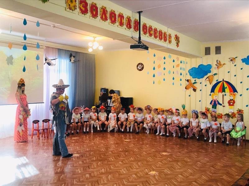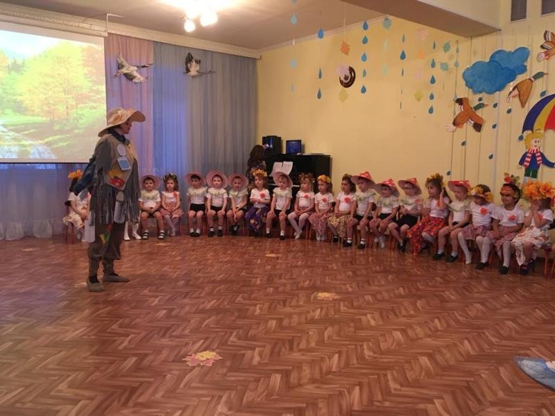 На дворе слякоть и холодно, а у нас в зале царила теплая, доброжелательная атмосфера. В гости к ребятам пришла красавица Осень, которая предложила отправиться в путешествие на паровозе Букашка, а в дальнейшем на автобусе.