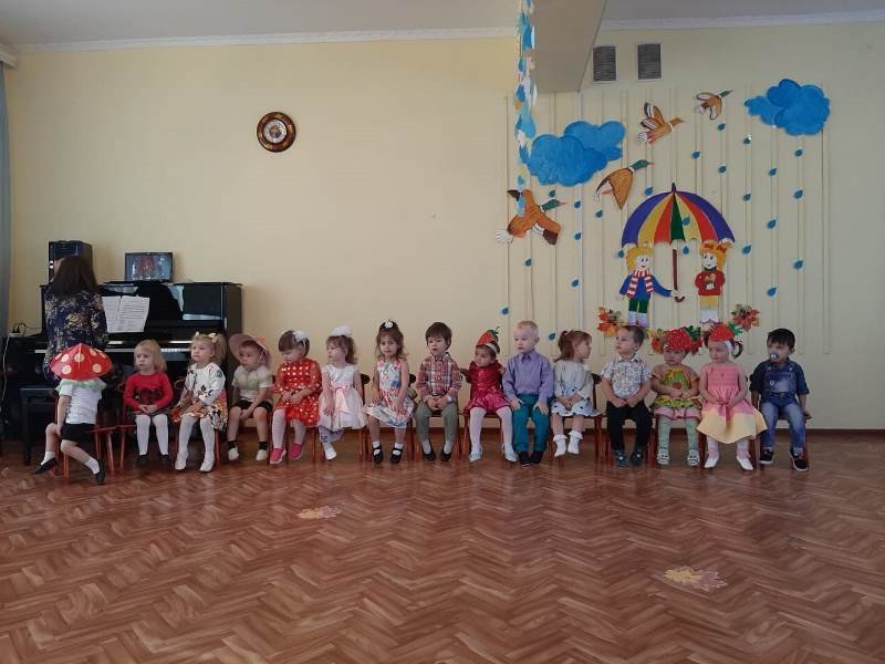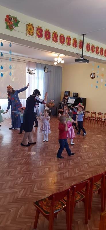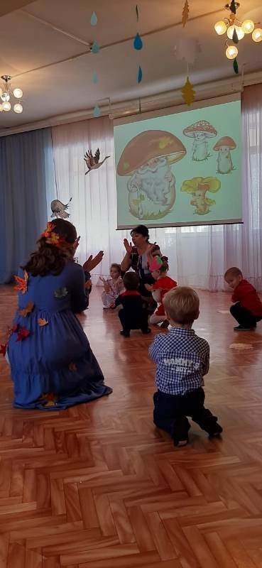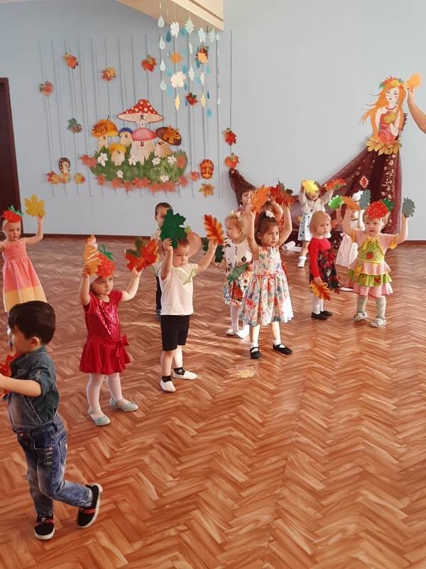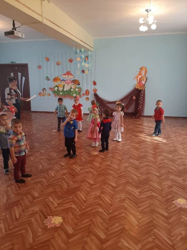 В осенний музыкальный зал малыши пришли нарядными, с отличным настроением. Они с удовольствием играли с осенью, водили хороводы, пели, хлопали в ладоши.