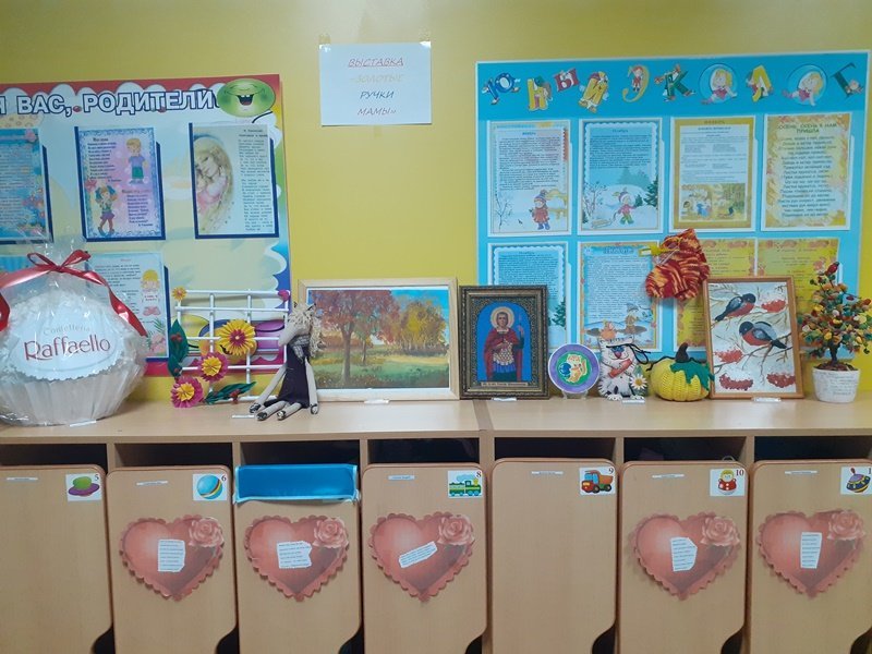 В честь этого праздника в первой младшей группе «Бусинки» была организована выставка «Золотые ручки мамы» и Развлечение вместе с мамами.