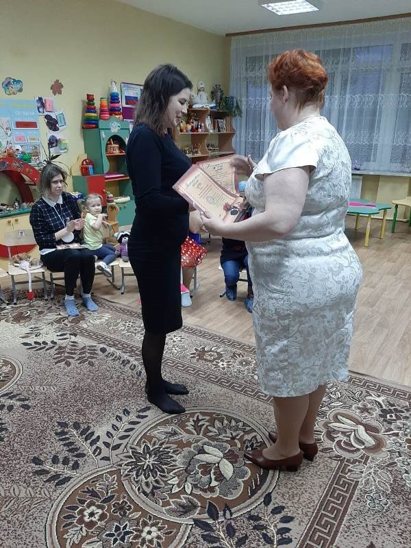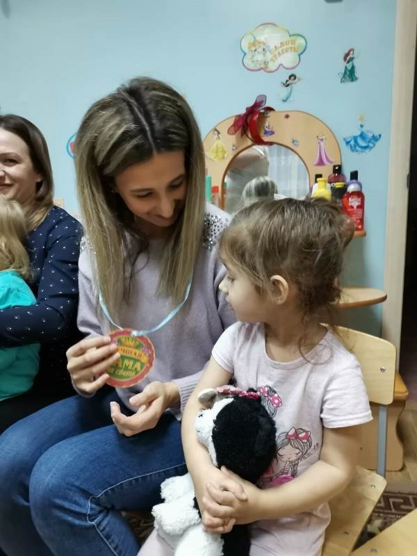 20 ноября в 16.00 мамы группы «Бусинки» дружно пришли на праздник. Воспитатели группы организовали веселые конкурсы «Узнай своего малыша!», «Бег с ракеткой и воздушным шаром», «Самые ловкие», «Ловишки с колокольчиком», «Автоледи», «Мамабол». Мамы вместе с детьми танцевали «Танец маленьких утят», наряжали своих маленьких модниц. В заключении праздника воспитатели наградили всех мамочек медалями «Лучшая мама на свете» и вручили «Благодарственные письма» участницам выставки «Золотые ручки мамы».