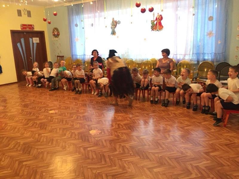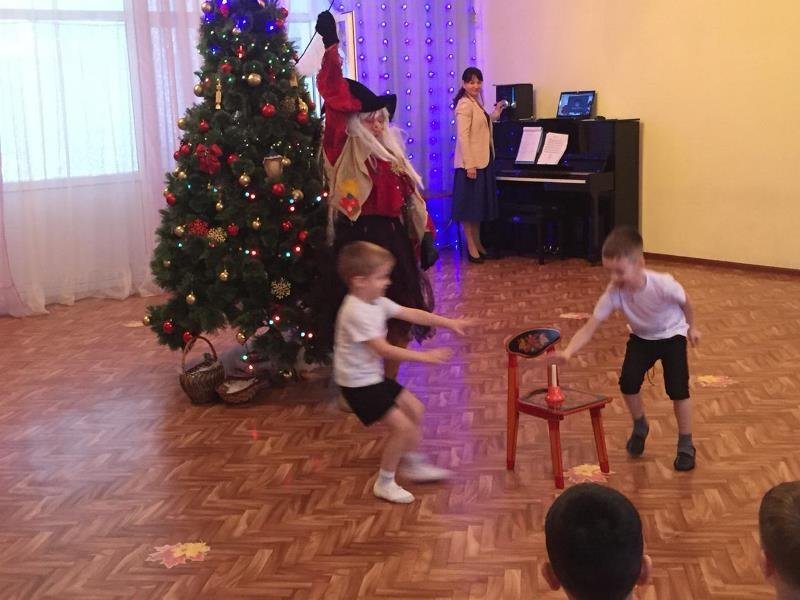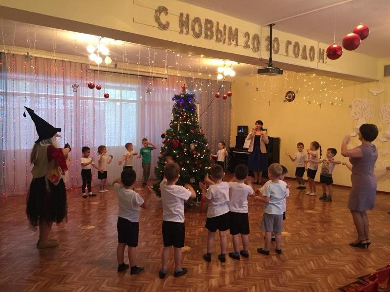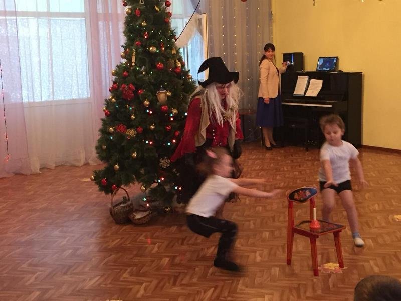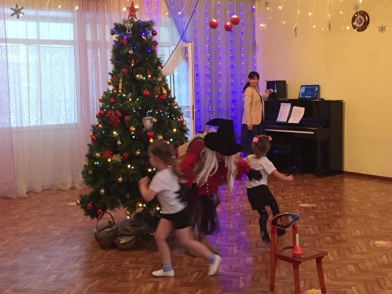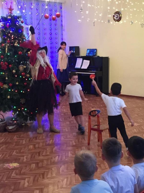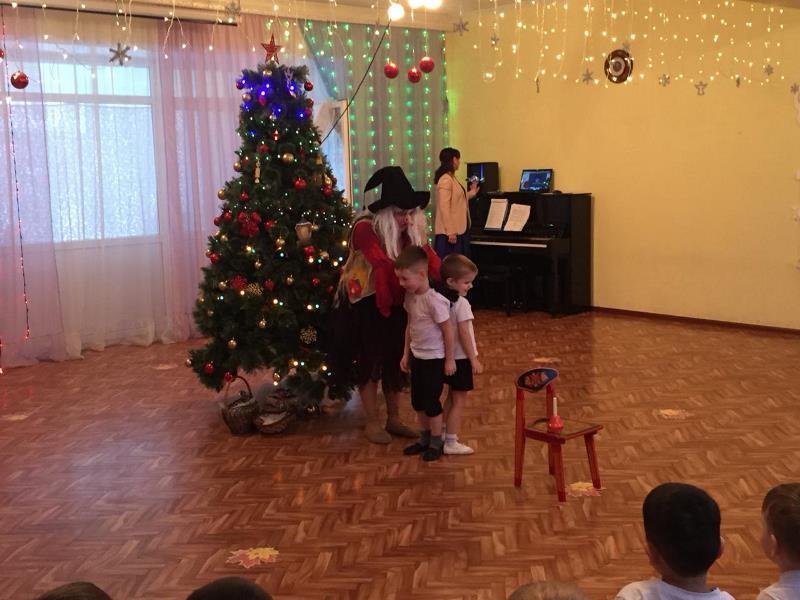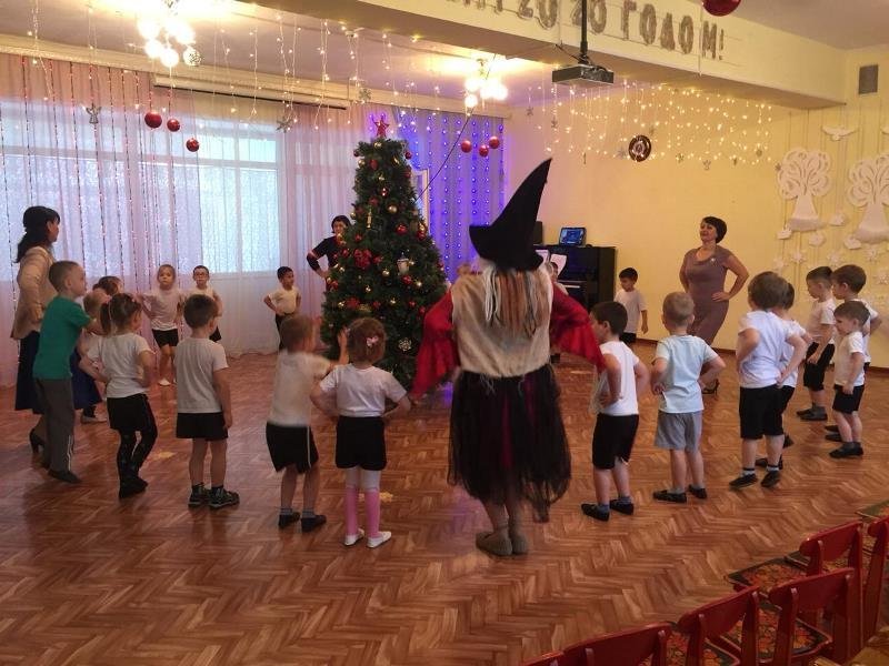 На праздник к ребятам пришла веселая и неугомонная Баба Яга, которая собралась забрать Ёлочку обратно в лес. Но сначала, она повеселилась вместе с ребятами на празднике. С Бабой Ягой ребята водили хороводы, пели песни, танцевали, отгадывали загадки, играли в разные подвижные и музыкальные игры.