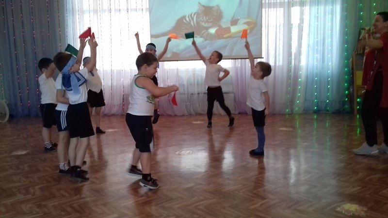 Музыкально-спортивное развлечение в старшей группе прошло весело и задорно. Мальчишки читали стихи, пели песни, танцевали и, конечно же, играли.
