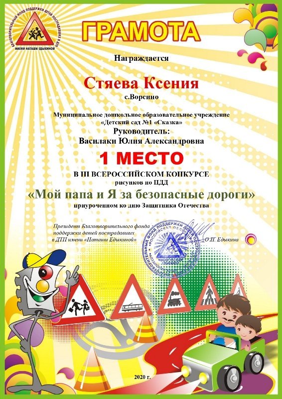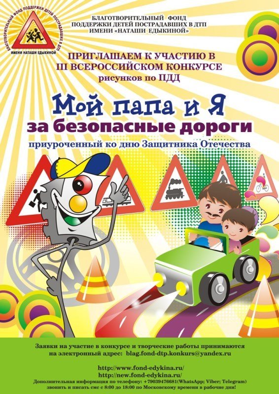 Благотворительный фонд поддержки детей пострадавших в ДТП имени «Наташи Едыкиной» в феврале 2020 года проводил III ВСЕРОССИЙСКИЙ КОНКУРС рисунков по ПДД «Мой папа и Я за безопасные дороги», приуроченный ко дню Защитника Отечества.