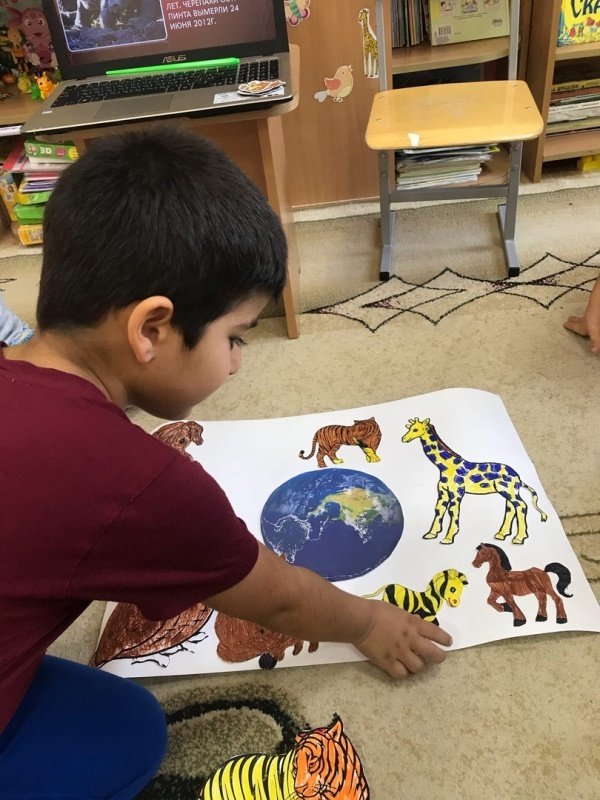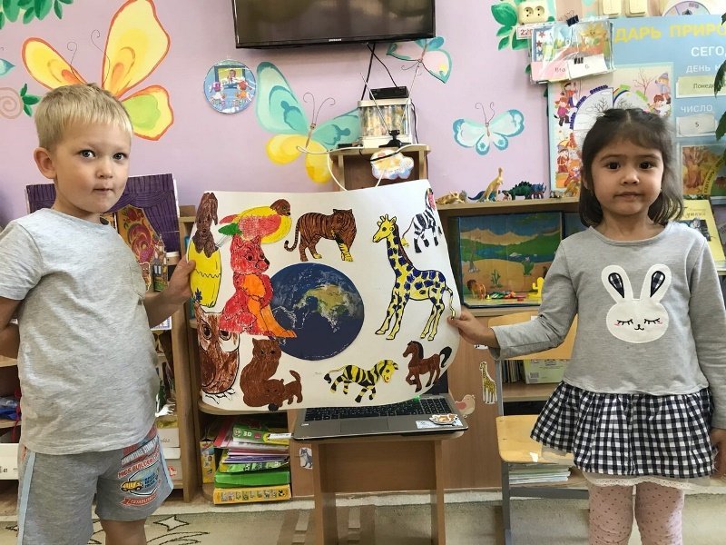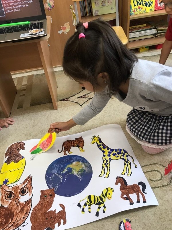 В игровой форме воспитатели ознакомили детей с редкими животными, объяснили, что такое «Красная книга», напомнили правила поведения в лесу. Просмотрели презентацию о празднике «День защиты животных» .Играли в дидактические игры: «Где кто живет?», «Чьи детки?», «Кто как кричит?», «Найди пару», «Кто где спрятался?». Ребята с удовольствием участвовали в конкурсе загадок, при этом верно угадывая не только хорошо знакомых им зверей, но и экзотических животных. Дети охотно делились и своим опытом общения с представителями животного мира: рассказывали о своих домашних питомцах, а также о посещениях зоопарков и цирковых представлений. Закончился тематический день стенгазетой «Мои любимые животные»