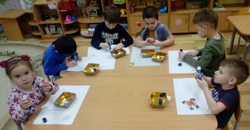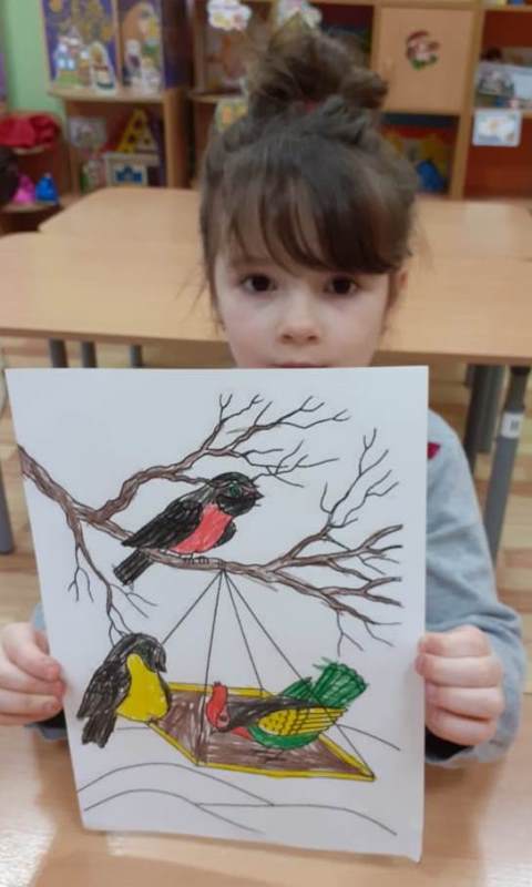 Дети рисовали зимующих птиц и делали аппликации из бумаги. Совместно с родителями и воспитателями оформляли газету «Поможем зимующим птицам».