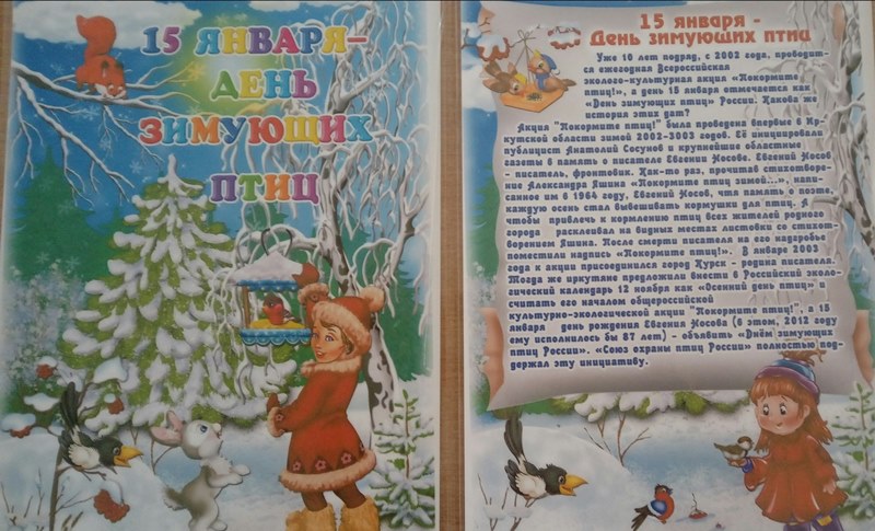 Зима – это не только игра в снежки, катание на санках, постройка снежных фигур, но и сильные морозы с пронизывающим ветром. В холодное время года перед зимующими птицами встает жизненно важный вопрос – как прокормиться? В связи с этим мы посчитали актуальным провести акцию «Птичья столовая». Акция вызвала большой интерес как у воспитанников, так и у их родителей.