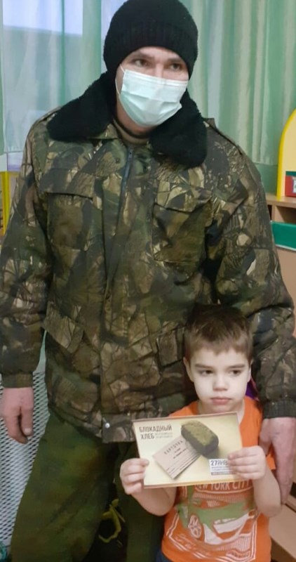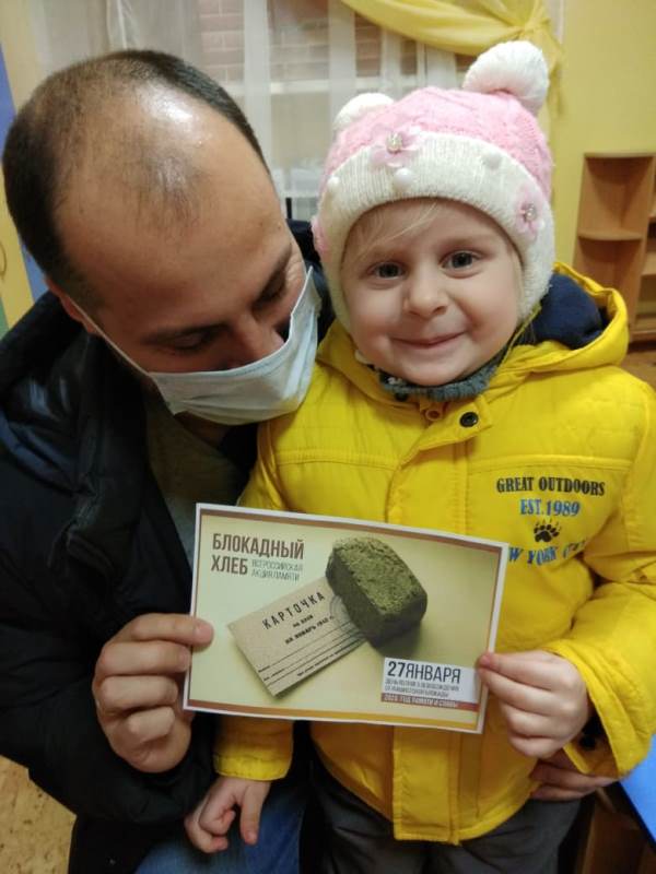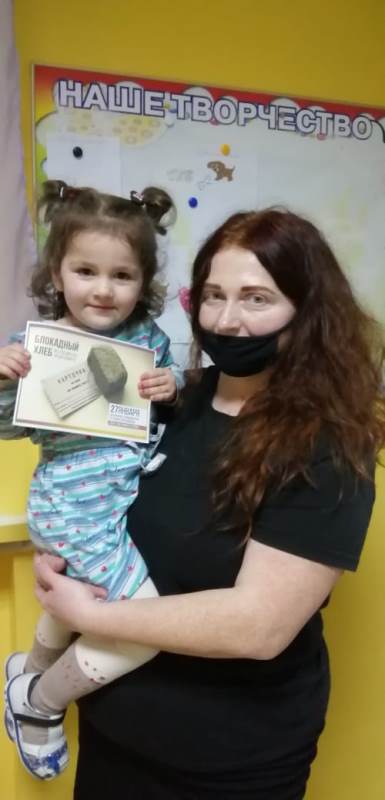 В рамках акции "Блокадный хлеб" в нашем детском саду с детьми старшего дошкольного возраста было проведено тематическое мероприятие. Дети познакомились с одной из героических страниц истории нашей страны – событиями блокадного Ленинграда, с жизнью детей и взрослых людей в дни блокады. Для детей был организован просмотр презентации, с помощью которой они узнали о блокаде Ленинграда, о "Дороге жизни", о карточках на хлеб. Детям показали кусочек хлеба весом 125 грамм, обратив их внимание, что эта норма выдавалась на один день, и что блокадный хлеб был испечен не только из съедобной муки, а также из жмыха. Ребята почтили память погибших минутой молчания под звуки метронома.