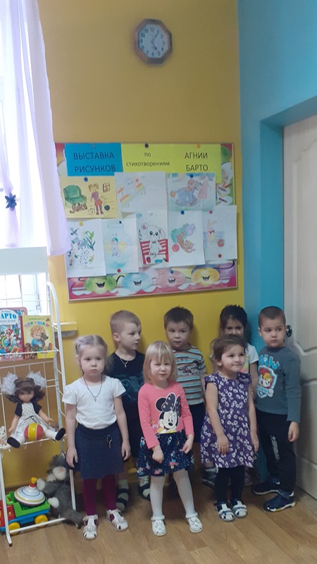 В день рождения известного поэта в группе «Бусинки» (дети 3-4 лет) была организована выставка рисунков по стихам Агнии Барто. Родители воспитанников приняли активное участие в организации выставки, вспомнили любимые с детства стихи. Лучшие рисунки будут принимать участие во Всероссийском детском конкурсе рисунка «Любимые с детства стихи», по произведениям Агнии Львовны Барто.