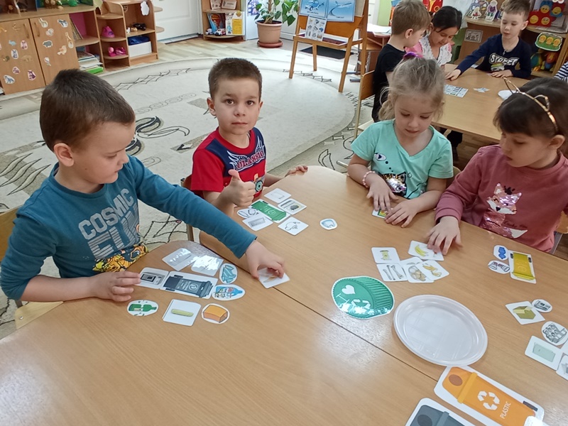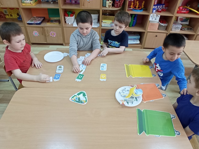 Уточняли представление детей об источниках возникновения мусора, развивали умение анализировать экологическую проблему. Развивали потребность соблюдения чистоты на улице, дома, в саду. Формировали умение сортировать мусор при его сборе, воспитывали аккуратность, бережно относиться к окружающему миру.
