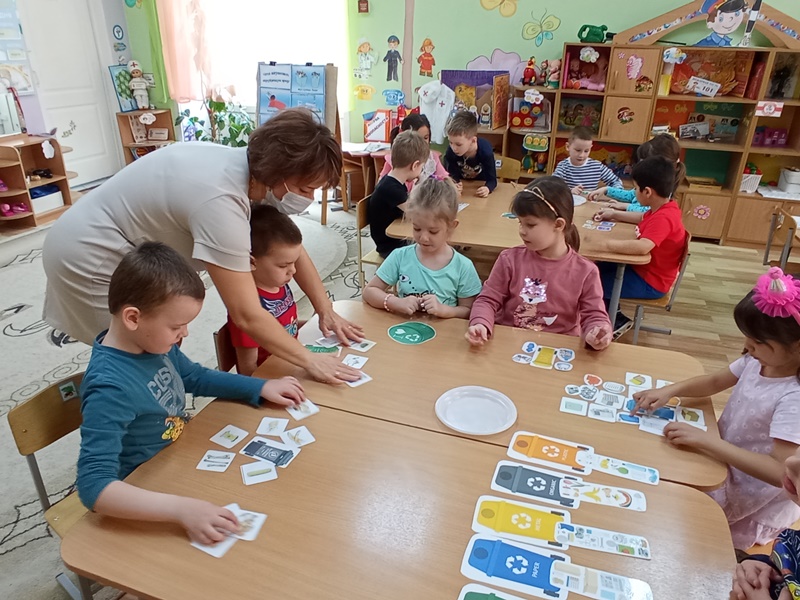 В группе "Солнышко" прошло мероприятие на тему: "Сортируем мусор - бережём природу". Была поставлена цель: познакомить детей с принципами сбора и утилизация бытовых отходов.