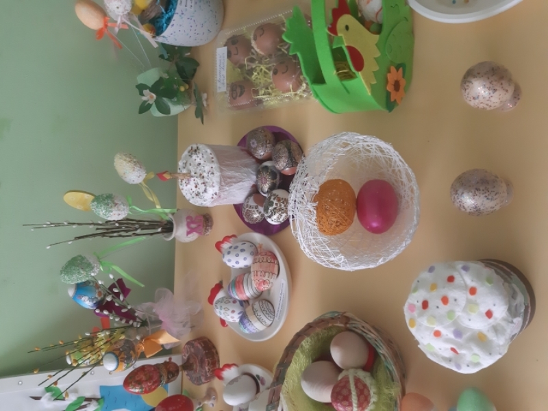 В нашем саду стало традицией ежегодно проводить выставку пасхальных поделок, которые изготавливают дети вместе с родителями и воспитателями. Вот и этот год не стал исключением. В этом году проходил конкурс "Пасхальные радости". Дети и родители проявили себя творчески. Делились друг с другом впечатлениями и навыками. На конкурс были предоставлены самые разнообразные варианты работ. Что может быть прекраснее совместного творения родителей и ребёнка!