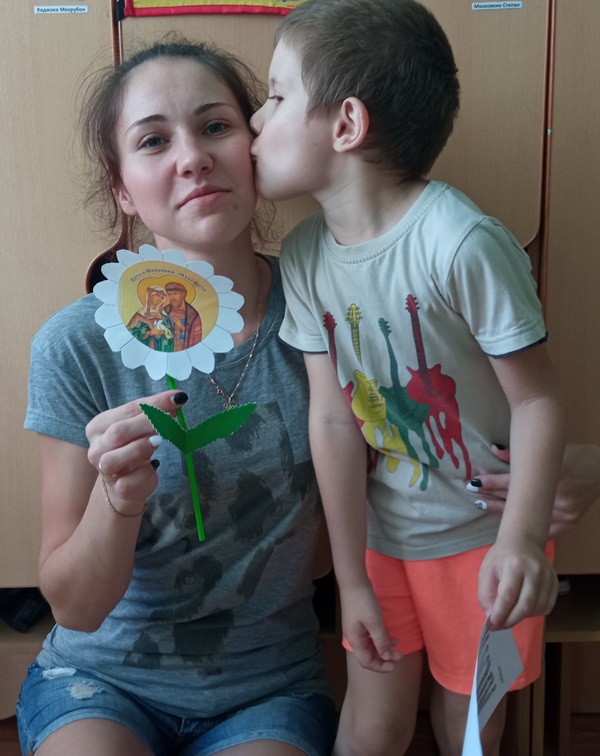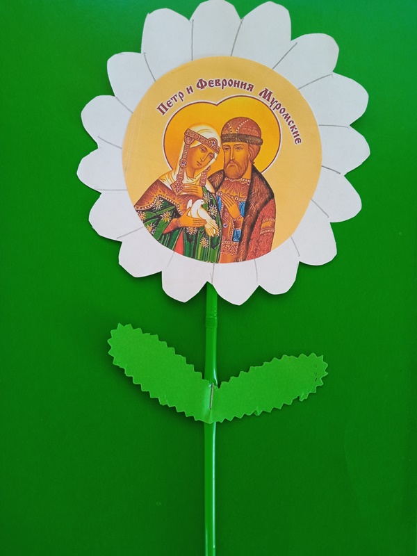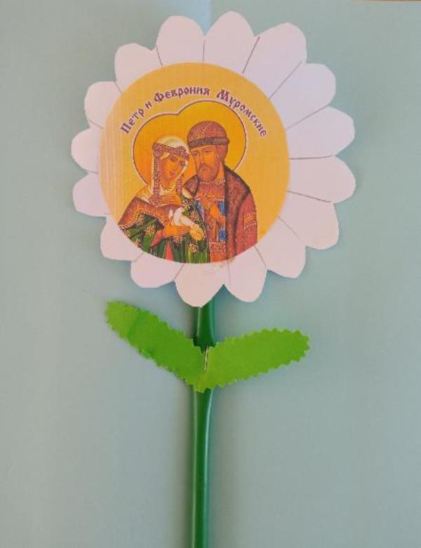 С ребятами были проведены беседы: "Ромашка - символ семьи, любви верности", "Семья в жизни человека", они узнали о жизни Петра и Февронии. Дети с большим интересом слушали рассказ воспитателя, задавали вопросы. Принимали активное участие в конкурсе "Собери ромашку". И самое интересное занятие, которое увлекло детей – это изготовление символа праздника – ромашки. Дети очень старались, работали аккуратно.Всем очень хотелось, чтобы их подарок был самым лучшим. Они решили, что ромашка волшебная и будет исполнять желания в их дружной семье. Ребята с любовью дарили сувениры родителям.