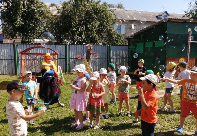 Дети получили массу положительных эмоций и зарядились хорошим настроением на целый день. Ребята сказали, что день получился весёлый, запоминающийся, а завершился он салютом из мыльных пузырей.