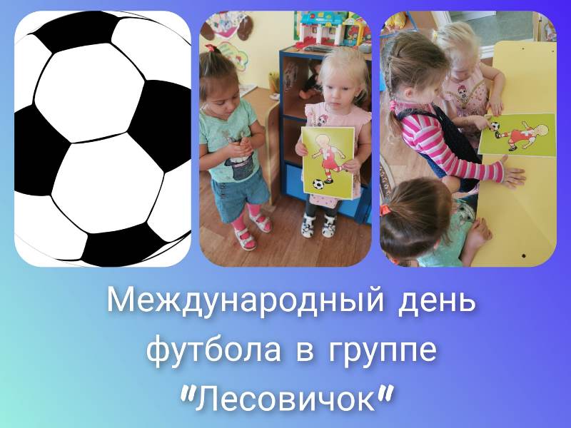 В Международный день футбола ребята группы "Лесовичок" узнали много интересного. Они рассматривали иллюстрации, слушали стихи о мячике, делали аппликацию "Мячик", играли в подвижную игру "Забей мяч в ворота".