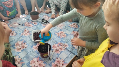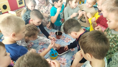 И, конечно, ребята сами заложили свой чудо-огород на подоконнике. Теперь ребята сами смогут наблюдать, как из маленького зёрнышка прорастает взрослая фасоль.