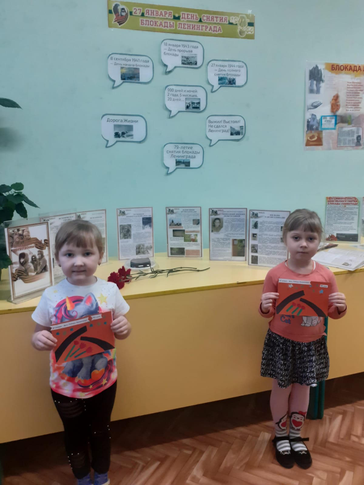 Со старшими дошкольниками беседовали о жизни Ленинградцев во время нападения фашистко-немецких захватчиков, блокадном хлебе, "дороге жизни". Ребята играли в военную игру "Разведчики", рисовали, делали аппликацию. Дети приняли активное участие в тематической выставке поделок, организованной в детском саду.