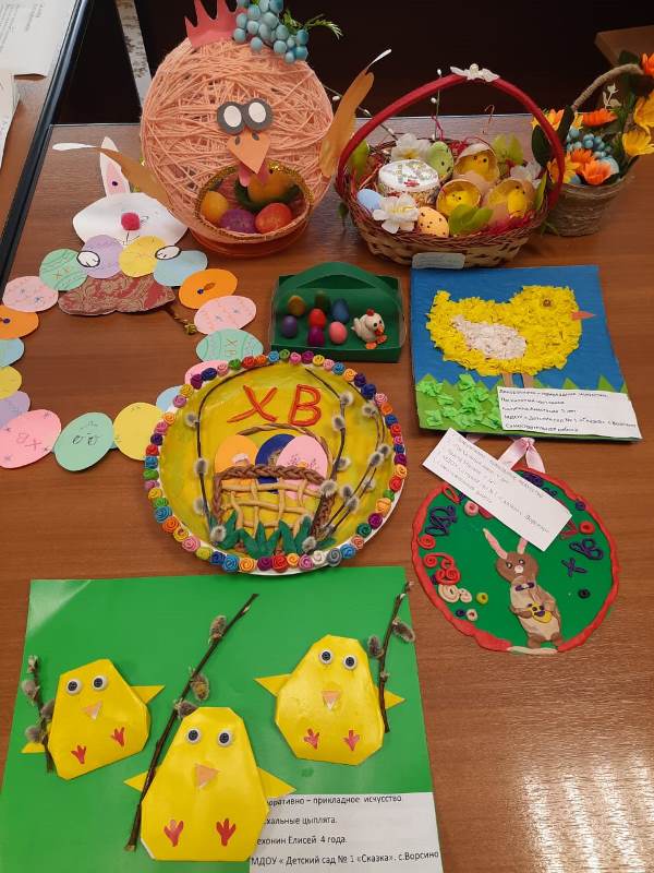 В МДОУ «Детский сад №1 «Сказка» с 05.04 по 14.04.2023г. проводилась выставка творческих работ к светлом празднику ПАСХА.